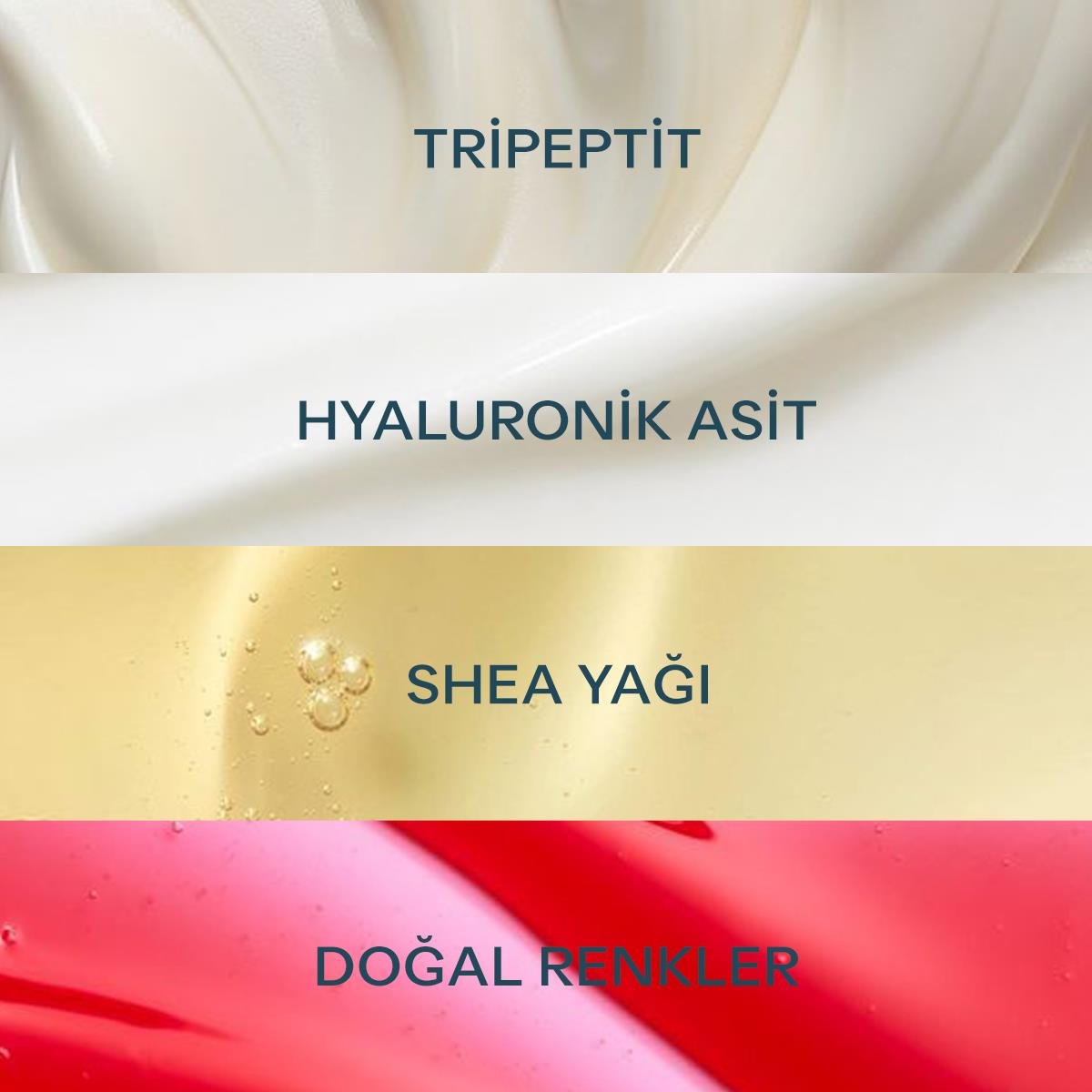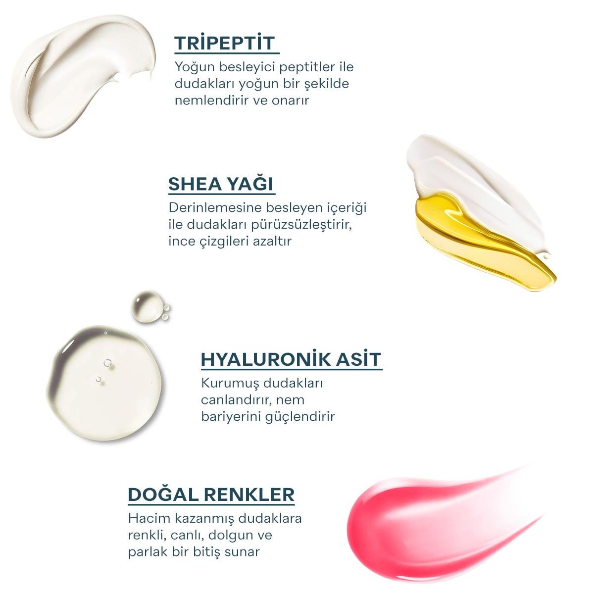 İçerdiği peptitler, kolajen üretimini desteklemeye yardımcı olarak dudaklarınızda gözle görülür bir dolgunluk ve pürüzsüzlük sağlamak için etkili olabilir.